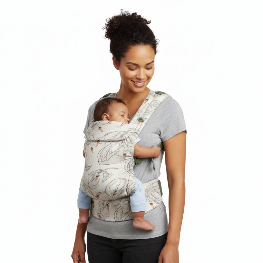 The Shopnovva Stylish Ergonomic Baby Carrier combines comfort, safety, and modern design to make parenting easier and more enjoyable. Crafted with premium, breathable cotton fabric featuring an elegant swan print, this baby carrier ensures your little one stays cool, cozy, and supported while you enjoy hands-free convenience.